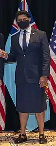 Tailored sulus with pockets are commonly worn as part of Fijian men's business and formal wear,[4][5][6] with shirt and sandals and optionally western-style jacket and tie. In certain situations, such as entering a church, wearing a sulu is seen as respectful.[7] Tailored sulus also feature in police and military uniforms.[8] Official uniform sulus come to below the knees and feature a distinctive zigzag hem.