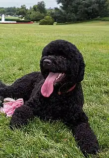 Sunny (born June 11, 2012) is a pet dog of the Obama family, the 44th presidential family of the United States. Sunny is a female Portuguese Water Dog who was a First Dog of the United States along with Bo.[1] Sunny was introduced via First Lady Michelle Obama's Twitter account on August 19, 2013.[2]