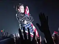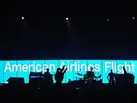 The on-field audience held light sticks.[47] The show began with U2 performing their 2000 hit single "Beautiful Day". For the first verse, Bono walked with a cameraman through the on-field crowd to reach the stage. While doing so, fans started slapping Bono on the back. Realising the wires for his in-ear monitors were exposed, he began to panic. He said: "All one person has to do is pull the wire, and I'm off air. I would hear nothing. Off the air in front of a billion people!" Bono said that his smirking facial reaction was a reflection of his fear at that moment;[48] he admitted that he was "swaggering with the most annoying smirk ever seen. You just think: That guy is such a prat!"[49] The band's second song was the elegiac "MLK", during which the scrim was raised behind the stage, onto which a scrolling list of names of the 9/11 victims were projected. This segment segued into the third and final song, the band's 1987 hit single "Where the Streets Have No Name". Towards the end of the song, the scrim was released to the ground, and the names continued to scroll and be projected onto the interior of the Superdome. At the conclusion of the song, Bono opened his leather jacket to reveal an American flag in the lining.