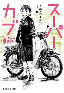 Super Cub (スーパーカブ, Sūpā Kabu) is a Japanese light novel series, written by Tone Kōken and illustrated by Hiro. Originally serialized online as a web novel on Kakuyomu from March 2016 to December 2021, Kadokawa Shoten have released eight volumes and one reserve volume from May 2017 to April 2022 under their Kadokawa Sneaker Bunko label. A manga adaptation with art by Kanitan has been serialized online since December 2017 via Kadokawa Shoten's Comic Newtype manga website. It has been collected in eight tankōbon volumes.