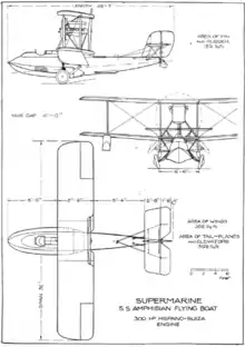 On 29 October 1919, Supermarine commenced design of a single seat flying boat fighter. It was developed from the Supermarine Baby and an aircraft developed from it, the Supermarine Sea Lion I.[2] The prototype of the Baby had first flown upon its completion in February 1918,[3][4] but never saw action during World War I.[5] and was no longer used after the end of the war.[2] The Sea Lion I had participated in the 1919 Schneider Trophy race, the results of which were annulled when the race ended in chaos due to the fog.[6]