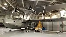 A single Stranraer, 920/CF-BXO, survives in the collection of the Royal Air Force Museum London.[43][44] This aircraft was built in 1940, one of 40 produced by Canadian Vickers. In service with the RCAF, it flew with several squadrons, on anti-submarine patrols, as a training aircraft and carrying passengers. In 1944, it was disposed of. It was flown by the civilian airline Canadian Pacific Airlines until 1947, then by Queen Charlotte Airlines, who replaced its original engines with American Wright R-1820 Cyclone engines. Queen Charlotte Airlines flew the aircraft on passenger flights until 1952, flying from Vancouver along the Pacific coast of British Columbia. It flew with several other private owners until it was damaged by a ship in 1966. In 1970, it was bought by the RAF Museum and transported to the UK.[40]