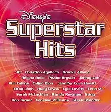 Superstar Hits is a compilation album released in 2002[1] and re-released in 2004[2] with new songs for tracks 12โ16 by Walt Disney Records. It features songs from popular Disney movies by mainstream artists like Celine Dion, Regina Belle, Elton John, Phil Collins, Vanessa Williams, Tina Turner, and Christina Aguilera.
