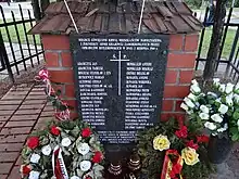 Following the unsuccessful attack, German forces decided to take revenge on the population of the nearby village of Wawrzyszew (now part of Warsaw, Poland).[3] Later that day, German forces, who according to the testimonies of the witnesses were from the Protection Squadron, entered the village. They set buildings on fire, destroyed them with grenades, and expelled the population. People who fought back, or were too slow to leave, were killed at the scene. Additionally, the attackers also executed several men. In total 30 people, including women and children, were killed, while a portion of the village was burned down.[2][4] The surviving population was displaced.[5]