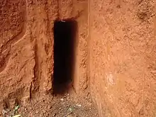 Suranga (also Surangam or thurangam) (English: Tunnel well) is a traditional water management system used to provide a reliable supply of water for human settlements and irrigation in Kasargod district of Kerala and Dakshin Kannada district of Karnataka, India.[1][2][3] A suranga is basically a horizontal tunnel dug in the slope of a laterite hill for about 30 metres (98 ft) to 40 metres (130 ft), which uses gravitational force for extraction of the underground water and collect into a storage tank.[2] As both the areas are covered by uneven and steep laterite hill which makes boring of traditional bore well hard and expensive, surangas are considered as a relatively cheap option.[1]:659