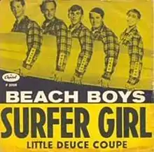 "Surfer Girl" is a song by American rock band the Beach Boys from their 1963 album Surfer Girl. Written and sung by Brian Wilson, it was released as a single, backed with "Little Deuce Coupe", on July 22, 1963. The single was the first Beach Boys record to have Brian Wilson officially credited as the producer.