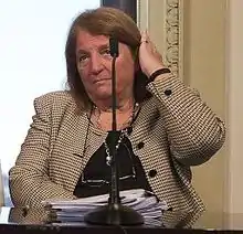 Susana Myrta Ruiz Cerutti (born November 18, 1940)[1] is an Argentinian lawyer, diplomat, and politician, who occupied the position of Minister of Foreign Affairs and Worship (canciller) during the presidency of Raúl Alfonsín, from May 26 to July 8, 1989. This made her the first woman in Argentina's history to reach the post of foreign minister.[1] She previously served as deputy foreign minister from 1987 to 1989, when she became foreign minister and later held other positions in that Ministry. During her diplomatic career, she was also Argentinian ambassador to Switzerland, Liechtenstein and Canada.[2]