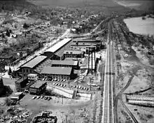 The borough was incorporated on August 19, 1853, from part of Harmony Township.[8] In 1863, the Erie shops were expanded to cover 8 acres (3.2 ha) and they employed 700 workers by 1865, and later over 1,000.[7] The complex included a 33-stall roundhouse, a rail yard, a foundry, gas works, oil works and offices.[9] By 1887, the shops were producing five locomotives per month.[8] The Susquehanna railroad station, which included a large hotel called the Starrucca House, opened in 1865.[10]