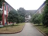On November 19, 1937, the Japanese Army invaded Suzhou and occupied the campus of Suzhou High School. During the 8-year war, the school relocated seven times and changed its name twice, in order to minimize attention. After the fall of Suzhou, SHS initially moved to rural Yixing—the Suzhou High School at Boyang (亳阳苏中). The students and faculty members had to change their campus again when Japanese occupied the whole Sunan (Southern Jiangsu) region. The Suzhou High School at Shanghai (苏中沪校) was located at Fuzhou Road, Shanghai International Settlement.[25] On December 8, 1941, the U.S. declared war upon Japan and the Japanese Army eventually annexed the International Settlement. As a result, SHS moved to Changzhou ("Private Qingyun School", 私立青云), Yixing[26]("Private Hongyi School", 私立弘毅), though in the name of private schools.[27] In October 1945, Suzhou High School finally returned to its original campus after the surrender of Japan.[28] During the 1940s and 1950s, Suzhou High School continued to be one of China's top high schools, with 40-50 students admitted by Peking University, Tsinghua University and Jiaotong University each year.[29] Despite this, the high-level academic atmosphere comparable with top universities no longer existed.[20] During the Chinese Communist Revolution, the People's Liberation Army occupied Suzhou on April 27, 1949 and the Communist Party took over the school.[30]