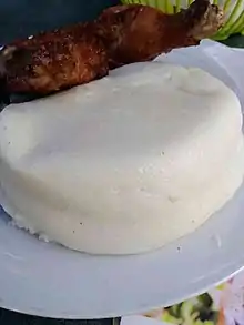 Swallows are a category of dough-like African staple food made of cooked starchy vegetables and/or grains.[1] Fufu of Western Africa, ugali and nsima of Eastern Africa, and sadza of Southern Africa are examples of swallows.