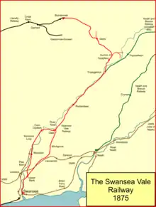 The Swansea Vale Railway (SVR) was a railway line connecting the port of Swansea in South Wales to industries and coalfields along the River Tawe on the northern margin of Swansea, by taking over a tramroad in 1846. It was extended to Brynamman in 1868. Passengers were carried from 1860, and a loop line through Morriston was built.