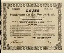 Share of the Schweizerische Ost-West-Bahn-Gesellschaft, issued 31 December 1860