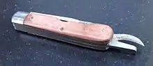 Soldier Knives are issued to every recruit or member of the Swiss Armed Forces and the knives issued to officers have never differed from those issued to non-commissioned officers and privates.[33] A model incorporating a corkscrew and scissors was produced as an officer's tool, but was deemed not "essential for survival". Officers were free to purchase it individually on their own account.[3]