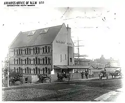 In 1926 major additions were carried out to the building. An L-shaped addition was added along the George Street (west) side and north side of the building, almost doubling its volume. The gabled roof of the 1870s rectangular building was removed and the whole roof was made flat, behind parapets. In 1983 the 200 seat Marionette Theatre was opened following conversion for an auditorium, foyers, rehearsal rooms and workshops involving substantial structural changes and incorporation of stringent fire requirements, costing over $0.5m. The mezzanine gallery and its supporting structure was removed at this time. During its adaptation as The Rocks Heritage and Information Centre (later Sydney Visitor Centre) in 1991-3, the mezzanine gallery, its supporting columns and a sailor's cubicle in the 1880s block were reinstated. This work was based on documentary and physical evidence. Adaptations included an internal stair linking the gallery levels 2, 3, and 4, and the commercial kitchens and restaurant fitouts on level 1 and level two in the north western corner. The Heritage Centre exhibition and retail fit-out in 1993 and subsequent additions to the fitout in 1996 and 1998 were designed to be reversible.[3][4] The building was again refurbished in 2006 for use as an art gallery.[1]