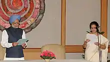 The Prime Minister, Dr. Manmohan Singh administering the oath of office as Member Planning Commission to Dr. Syeda Hameed, in New Delhi on July 27, 2009