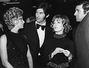Koscina (left) with fellow Yugoslav actors Ljubiša Samardžić, Milena Dravić, and Bata Živojinović at the Battle of Neretva premiere in Sarajevo in November 1969
