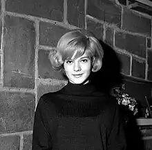 In December 1964, as Hallyday went into military service, Sylvie's brother Eddie hired two English songwriting session musicians, Tommy Brown on drums and Mick Jones on guitar, as they went to record in New York; they wrote her the hit "Cette lettre-là".[2] On January 16, 1964, Sylvie performed with The Beatles, and opened their show at Olympia.[9] Set in the smart design of the J.C. Averty Show, "Cette lettre-là" was the first of Sylvie Vartan's TV variety night performances.[10] In 1966–67 she recorded more original hits. "Dis moi, que tu m'aimes" premiered on TV on 9 July 1967 was accompanied by a group of male dancers. "Le jour qui vient" was aired on the Dim Dam Dom program of the French Television 1 in color on 14 January 1968. "2'35 de bonheur" and "Comme un garçon" were other #1s in France, Italy, Belgium, Japan, or Korea.[10]