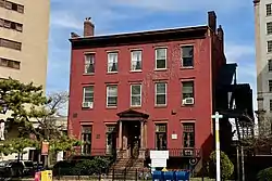 The house is a three story brick building with brownstone trim designed with Federal architecture style. The entrance features two fluted columns with Corinthian capitals. It was built in 1808 as a rectory for Trinity Church, which is located across the street. Reverend Matthew H. Henderson lived here until 1856. After the church sold the building, Robert B. Symington bought it in 1888. The Continental Insurance Company bought the building for office space in 1965.[4] Trinity & St. Philip's Cathedral repurchased it in 1978 and renamed it St. Philip's House.[5]