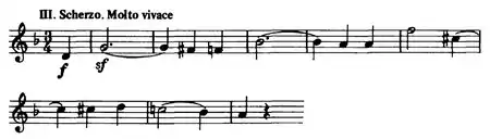 3. Scherzo: Molto vivace (D minor) – Trio I: Molto piu vivace (D major) – Trio II (B major) – Coda: Come sopra ma un poco più lento – Quasi presto – Meno presto (D major)