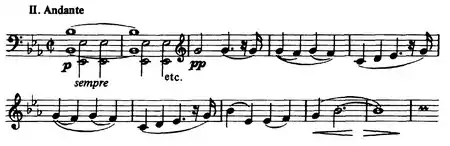 2. Andante (ma non troppo lento) (half note = 54) in E major and ternary form, variation form