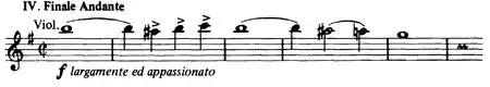 4. Finale (Quasi una fantasia): AndanteAllegro moltoAndante assaiAllegro molto come primaAndante (ma non troppo) in E minor and fantasia-like with an orchestrated introduction from the first movement