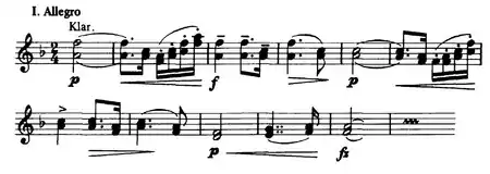Dvořák composed his fifth symphony in the summer months in June and July 1875. The opus number is actually incorrect. The autograph was marked with opus number 24, but the publisher Simrock (ignoring the protests of the composer) gave this symphony a high number of 76.[1] It is considered largely pastoral in style, similar to Symphony No. 6 which he wrote about five years later. The symphony was first performed four years after it was written, on 25 March 1879 at the Slav concert of the Academic Readers' Association in the Prague Žofín concert hall, conducted by Adolf Čech. It was published by Simrock in 1888 (also as a piano arrangement for four hands). The composition was revised in the autumn months of 1887.