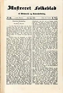 The first installment of Synnøve Solbakken, published in Illustreret Folkeblad on June 13, 1857