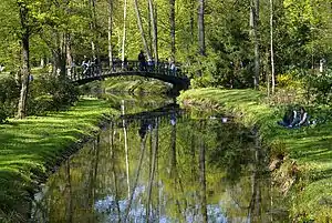 The park hosts a Japanese Garden, prepared for the World's Fair of 1913, restored by a Japanese foundation,[1] partially destroyed by the 1997 flood and reconstructed. There is also a wooden church from the turn of the 17th century, originally in Stare Koźle.