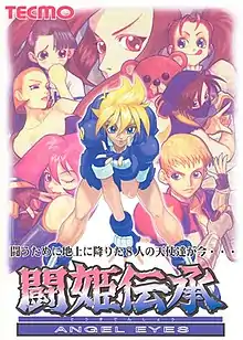 Tōkidenshō Angel Eyes (闘姫伝承 ANGEL EYES) is a Japanese fighting video game developed and published by Tecmo. It was released in arcades in June 1996, and later to the PlayStation console in December 1997. It is a two-dimensional fighting game featuring all female cast of characters.