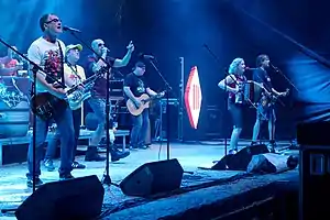 Tři sestry (Czech for "three sisters") is a Czech punk band formed in 1985 in Prague. Some of their later material has fallen into a more general rock genre, and they have also dabbled in hardcore punk.[2] The band experienced the peak of their popularity in the 1990s and have played at the Masters of Rock music festival in 2005 and 2011.[4] Their main songwriter and lead singer is Lou Fanánek Hagen.[2] The other current members of the band are Veronika Borovková (harmonica, vocals), Tomáš Doležal (bass), Ronald Seitl (guitar), Zdeněk Petr (guitar), Rostislav Cerman (guitar), Petr Lukeš (drums), and Martin Roušar (saxophone, clarinet). Tři sestry have released more than twenty studio albums and a number of live recordings and compilations throughout their career.