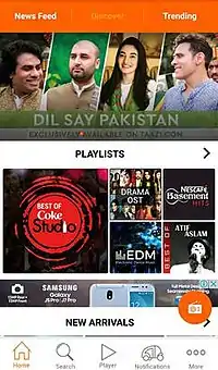 Taazi is a Pakistani website and smartphone application focusing on music. It is the online music streaming service and a digital distributor of Lollywood, Coke Studio and other regional Pakistani music across the world. Taazi describes itself as a platform to combat piracy and give local musicians a medium to monetize their music through its unique billing system.[1] Taazi features content of both established and upcoming musicians.[2]