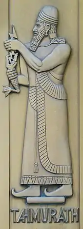 Tahmuras or Tahmures (Persian: تهمورث ,طهمورث, IPA: [tʰæmures]; from Avestan Taxma Urupi "Strong Fox" via Middle Persian: 𐮑𐮇𐮋𐮅𐮊𐮎𐮀, romanized: Tahmōref) was the third Shah of the mythical Pishdadian dynasty of Iran according to Ferdowsi's epic poem, the Shahnameh. He is considered the builder of Merv.