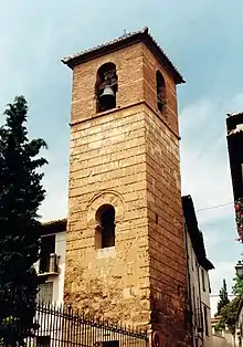 The Zirids are also believed to have constructed the Great Mosque (congregational mosque) of Granada, whose site is now occupied by the present-day Cathedral.[53][54] One Arabic historical text records that its minbar was completed in the year 1055.[54] In the Albaicín, the bell tower of what is now the Church of San José was originally a minaret and is traditionally dated to the Zirid period. It belonged to a mosque known as the al-Murābiṭīn Mosque (the Mosque of the Marabouts or "Almoravid" Mosque).[55][56][48][57]
