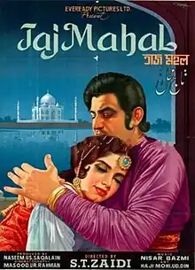 Taj Mahal is a Pakistani Urdu language film released on 22 December 1968. It is directed by S.T. Zaidi and was his first film in the country. Previously, he served as the assistant director of K. Asif's Mughal-e-Azam (1960).[2] The film stars Mohammed Ali, Zeba, Habib, Yousuf Khan and Aliya. The music of the film was composed by Nisar Bazmi. A Box office hit, the film was released in December 1968.[2]