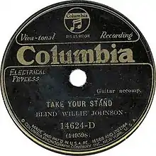 "Take Your Stand" is a gospel blues song recorded in 1929 by Blind Willie Johnson on vocals and acoustic guitar and an unidentified female singer.[1]