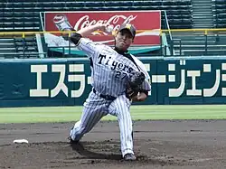Akiyama with the Hanshin Tigers