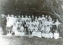 Another important element of the school site was the teachers residence which was not completed with the original school building, though by 1880 plans had been made for its erection. Residences were an important element of school sites as it was thought they attracted better quality teaching staff. By 1880 the students at Tallegalla School were taught by Mr John Marquis, who replaced Mr Edward Henry Vivian Dunbar, the first head teacher at the school. In 1880 the School Committee raised sufficient funds to enable the Education Department to finance construction of a residence which was a simple four roomed cottage surrounded by verandahs. Many changes were made to this residence in the late nineteenth and early twentieth century before it was replaced in 1931. Alterations included adding a rear verandah in 1892, internal lining in 1895; the addition of a detached kitchen and bathroom in 1898 and the addition of two detached bedrooms in 1911 to house the large family of the then Head Teacher, Daniel Courtney.[1]
