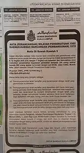 Notice by Kuala Lumpur City Hall