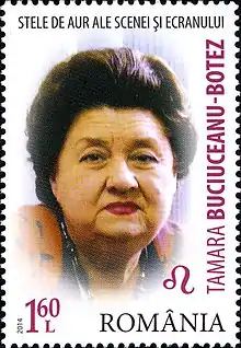 Tamara Buciuceanu-Botez (10 August 1929 – 15 October 2019) was a Romanian stage, screen and television actress, as well a known TV personality. She was one of the most successful Romanian actresses of the 1960s–2000s who worked at Odeon Theatre, known for Liceenii (1986), Liceenii Rock 'n' Roll (1992), Silent Wedding (2008) and Everybody in Our Family (2012).[1][2][3]