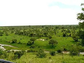 It covers an area of approximately 2,850 square kilometers (1,100 square miles.) The landscape is composed of granitic ridges, river valley, and swamps. Vegetation is a mix of Acacia woodland, Combretum woodland, seasonally flooded grassland, and baobab trees.