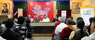 Tashi Tsering, right alongside Acharya Karma Monlam, Sonam Gyaltsen and Chung Tsering, at a photo exhibition in memory of Rakra Tethong Rinpoche, 2013.