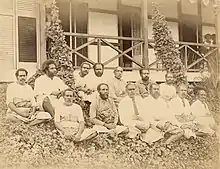 Turaga Buli and son of Taukei ni Waluvu Ratu Meli Davetanivalu II seated first left in second row. A photograph showing a group of Fijian chiefs, sitting in two rows in front of the verandah of Government House at Suva.[20] The occasion is not certain. It is most probable the chiefs as Roko Tui's -head provincial administrators were invited by the Governor to celebrate either the Golden Jubilee of the Methodist Church in Fiji in 1885 or Queen Victoria's Golden Jubilee on 20 June 1887. All were high chiefs in their own right.