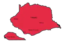 The Tawau District (Malay: Daerah Tawau) is an administrative district in the Malaysian state of Sabah, part of the Tawau Division which also includes the districts of Kunak, Lahad Datu, Semporna and Tawau. The capital of the district is in Tawau Town. The district also includes the northern half of Sebatik Island, which is shared with Indonesia's North Kalimantan province.