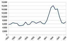 Passenger numbers peaked in 1944, as shown in the graph and table below -