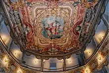 The painted decoration was completed Antonio Liozzi, who painted the central ceiling fresco of the goddess Flora, as well as the mouldings and frames.[2] 43°03′24.7″N 13°25′31.0″E / 43.056861°N 13.425278°E