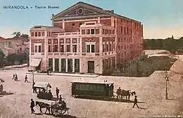 The Teatro Nuovo in the early 20th century with the terminus of the horse tram.