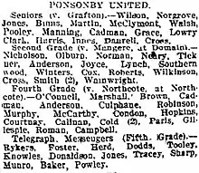 The fifth grade side had what was possibly their first on field win when they beat City A by 12 points to 3. However the sixth grade side lost their first ever match going down to Richmond Rovers 7–3.[19] In late May two players joined their sides; Walter George Caddy registering from Richmond to join their 6th grade team, with S Grinlinton joining their 5th grade side from the Newton Rangers club.[20] Towards the end of the season their team lineups were published and the Sixth grade side featured two players named “Cooke”. It is highly likely that one of them is Bert Cooke who went on to become a famous New Zealand rugby international and then later a New Zealand rugby league international. He would have returned to Auckland from his schooling in Hamilton around this time aged 15–16 and was a messenger for the Post and Telegraph Department. He was also known to have played rugby league in the 1910s before joining the Grafton rugby club around 1920.[21][22]