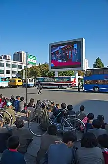 Television in North Korea is subject to the Korean Central Broadcasting Committee and controlled by the Propaganda and Agitation Department of the Workers' Party of Korea.[1] A study in 2017 found that 98% of households had a television set.[2] As of 2020, there are over-the-air broadcasts in both analogue and recently launched digital formats.[3]