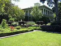 Temelec Hall is historical building built in 1858, in Sonoma, California in Sonoma County, California. The Temelec Hall is a California Historical Landmark No. 496 listed on June 10, 1936. Temelec Hall is also a National Register of Historic Places April 19, 2006. Temelec Hall was built by Captain Granville P. Swift (1821-1875), a member of the Bear Flag Party and took part in the short Mexican–American War in 1846–1848. Swift was the great-grandnephew to Daniel Boone. Swift found gold in 1949 California Gold Rush. With the gold, Swift built the building with stone quarried here by native labor. General Persifor Frazer Smith, a United States Army commander in lived in a small house near Temelec Hall in 1849. After Swift Temelec Hall was sold a few times. In 1915 it was sold to the Coblentz family, who restored the run down building. Coblentz family sold the Hall and it lands in 1961, to a developer. The developer built the Temelec retirement community with the Hall as historical centerpiece.[2][3][4]