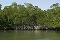 Unlike the red and black mangroves, the white mangrove usually grows on high, dryer land. The leaves of the white mangrove are different than the others because of its thick roundish leaves.[2]